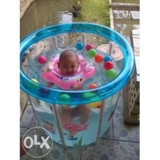 Kolam ini biasanya dilengkapi dengan termometer dan pelampung leher untuk bayi.
